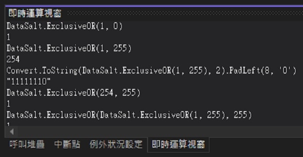 DataSalt.ExclusiveOR(DataSalt.ExclusiveOR(1, 255), 255)